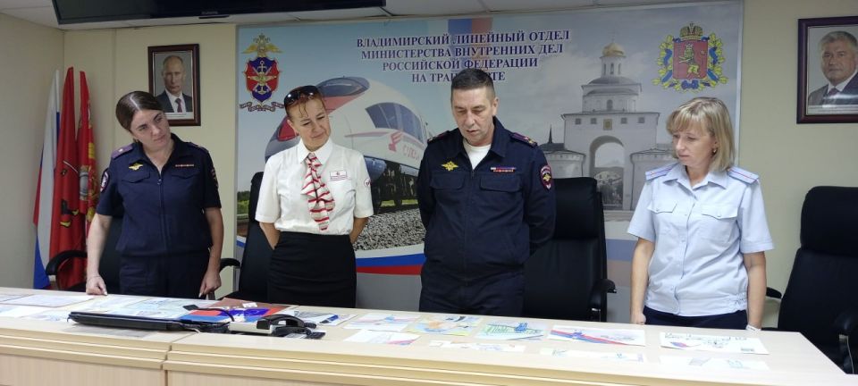 Начальник Владимирского линейного отдела полковник полиции Дмитрий Видешин, сотрудники подразделений и председатель общественного совета при линейном отделе Наталией Лужных подвели итоги отборочного этапа Всероссийского творческого конкурса детского...