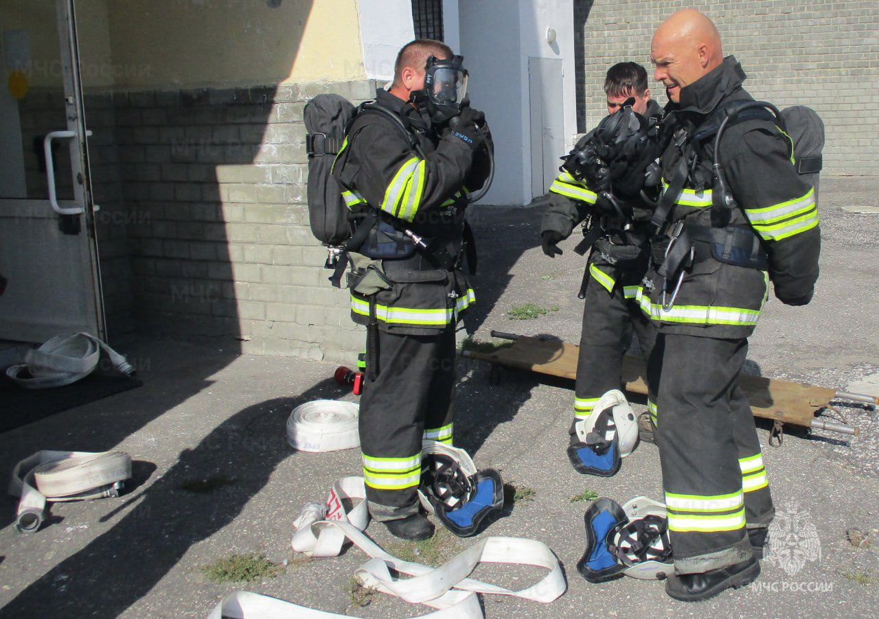 Разведка помещений была ключевым элементом учений. Газодымозащитники обнаружили и эвакуировали «пострадавшего», передав его медикам. Для тушения условного пожара использовали ствол РС-50.