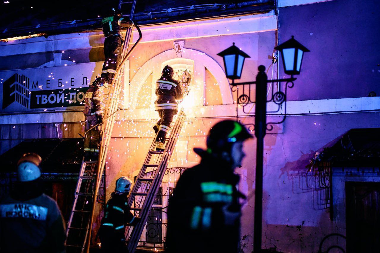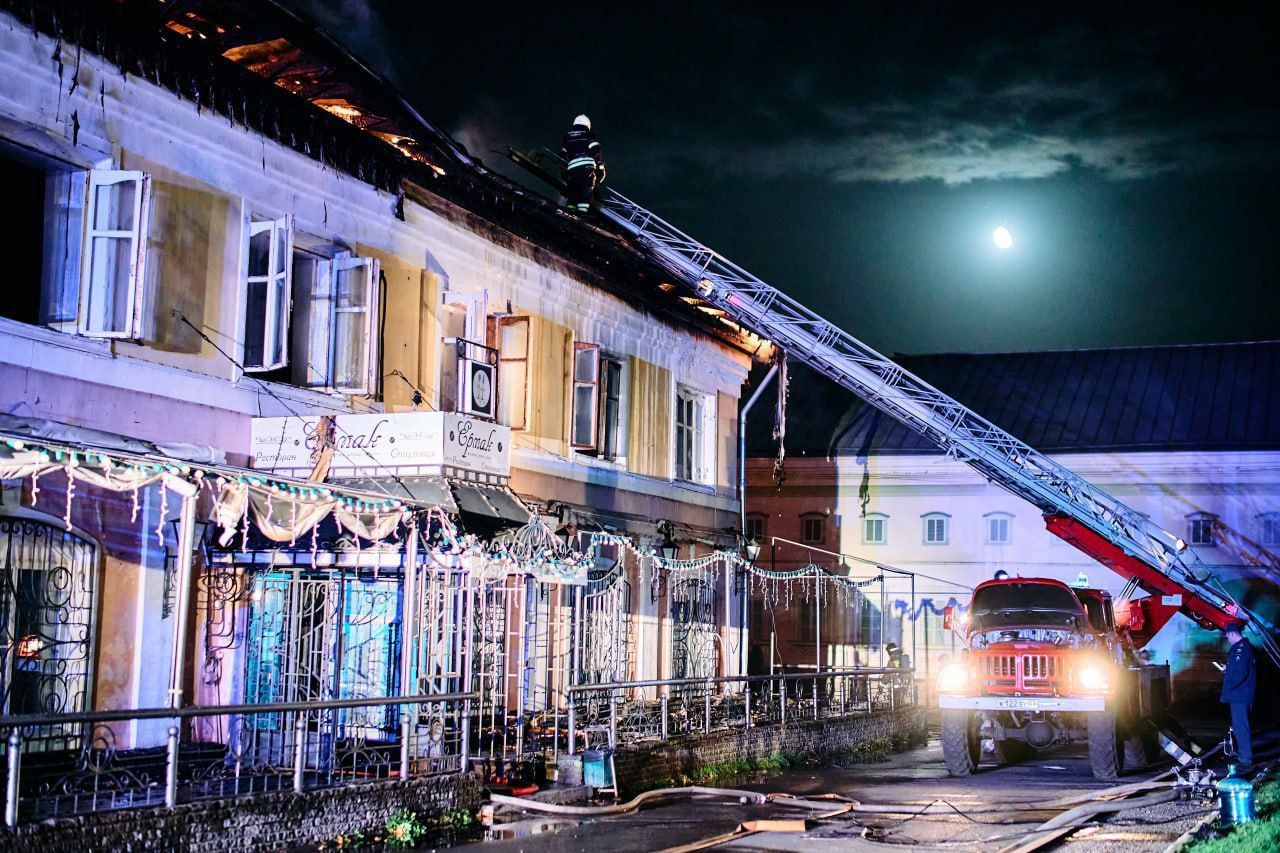 В 18:49 в городе Муром на улице площадь 1100-летия, дом 8 произошло возгорание кровли ресторана, на площади 800кв.м. с угрозой перехода на соседние здания.На месте происшествия был развернут оперативный штаб пожаротушения.Пожар был локализован в 20:00...