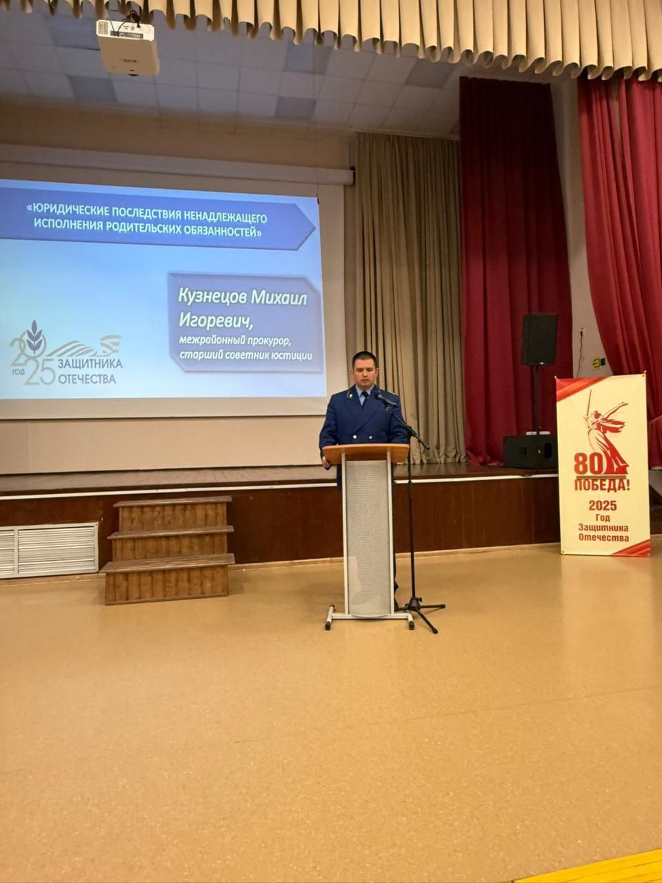 Руководитель районного надзорного ведомства выступил с подробным докладом, посвященным юридическим последствиям ненадлежащего исполнения родительских обязанностей.В доступной и содержательной форме присутствующим подробно сообщено об уголовной, административной ответственности за вовлечение несовершеннолетних в противоправные действия, за оставление детей в опасности и жестокое обращение с ними, за неуплату алиментов.
