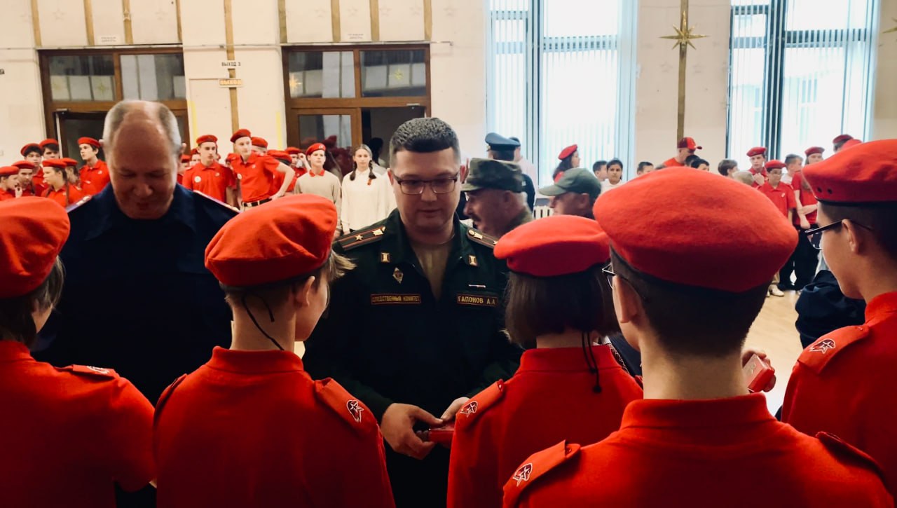 Помощник руководителя следственного управления СК России по Владимирской области (по общественно-политической работе) Сергей Курганов совместно с сотрудником военного следственного отдела СК России по Владимирскому гарнизону Алексеем Гапоновым приняли участие в торжественной церемонии посвящения школьников в члены Всероссийского детско-юношеского военно-патриотического движения «Юнармия».