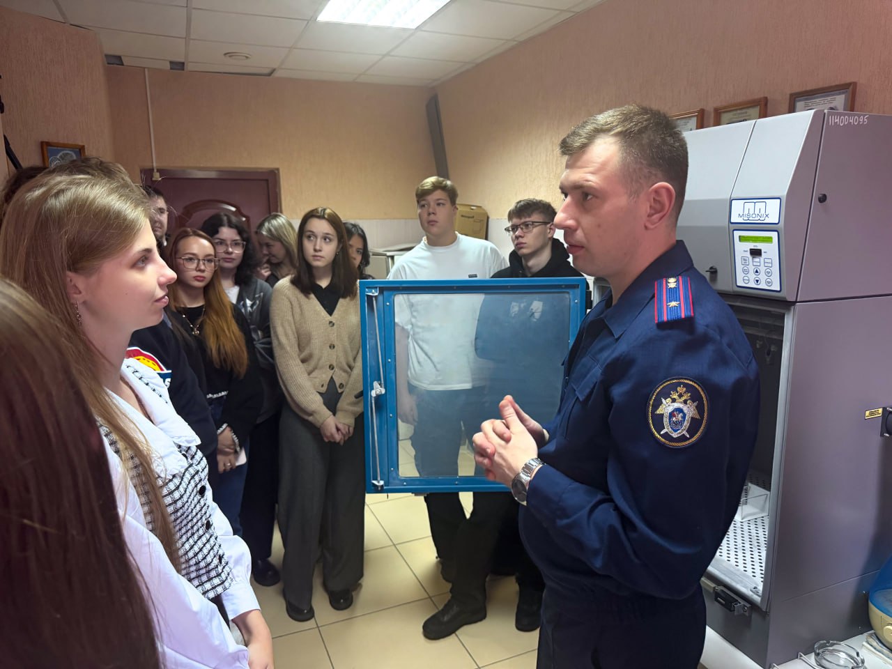 Петр Денисов продемонстрировал работу источника криминалистического света, позволяющего увидеть следы крови, которые под воздействием ультрафиолета обнаруживают себя определенным свечением. Также студенты были ознакомлены с цианакрилатной камерой, которая визуализирует имеющиеся на предмете следы пальцев и ладоней рук.