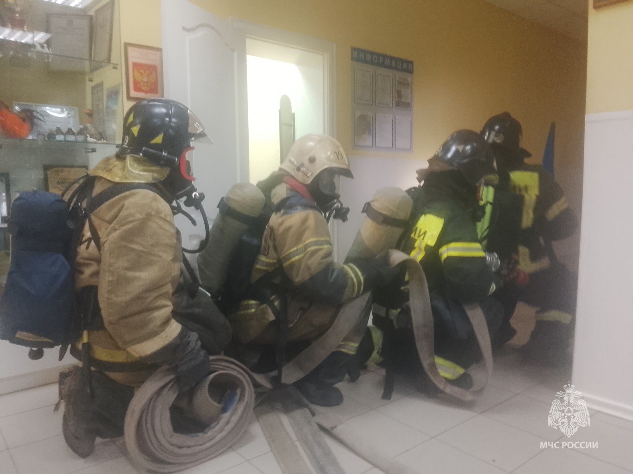 Первые прибывшие пожарные узнали о человеке на первом этаже и отправили звено ГДЗС для спасения. Второе подразделение искало очаг возгорания. Во время тушения одному сотруднику ГДЗС стало плохо, сформировали резервное звено.