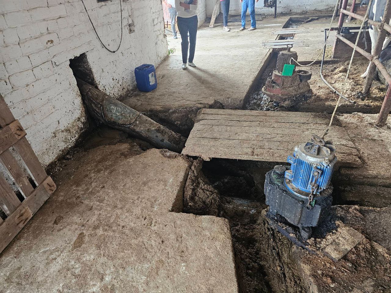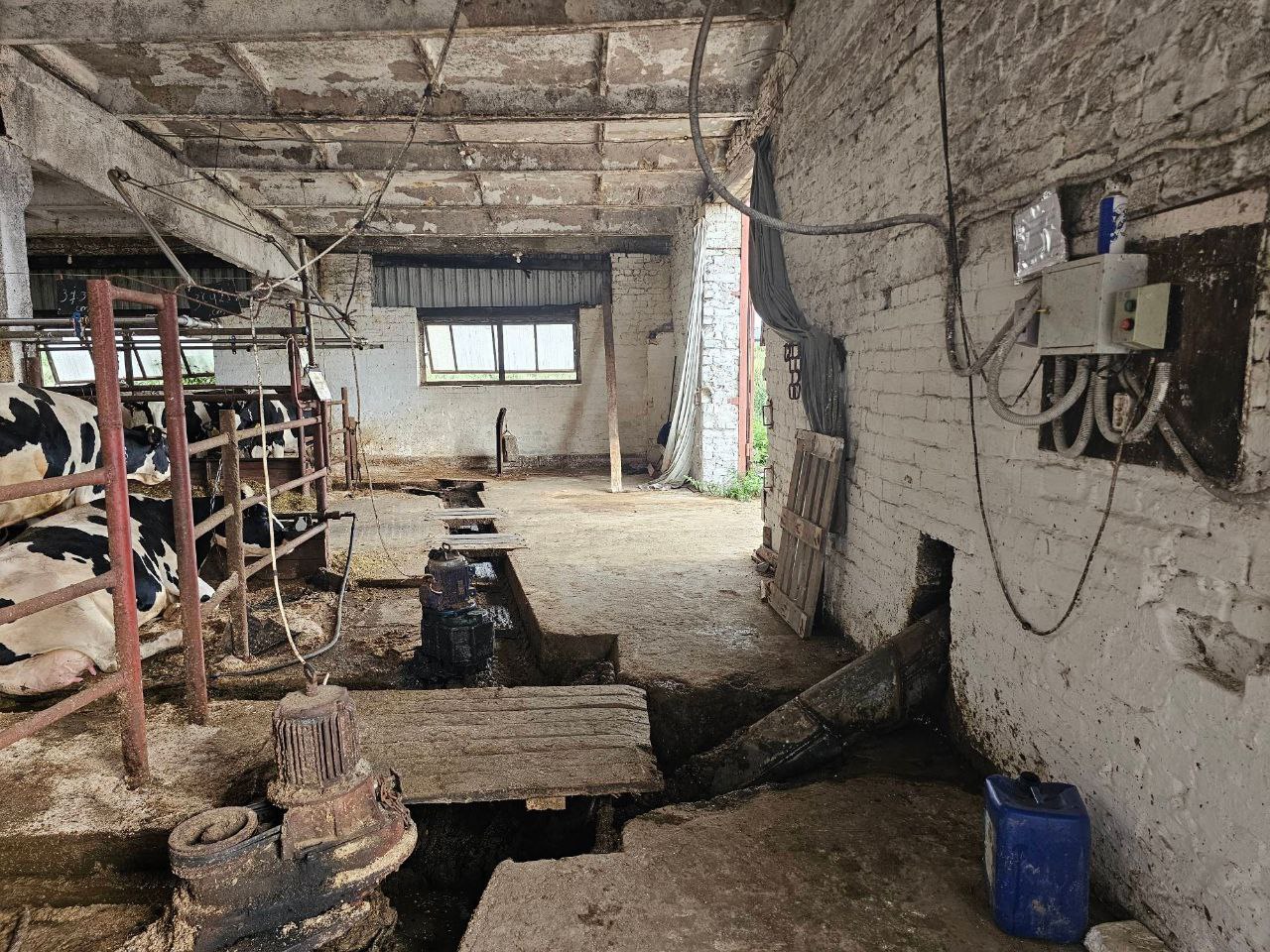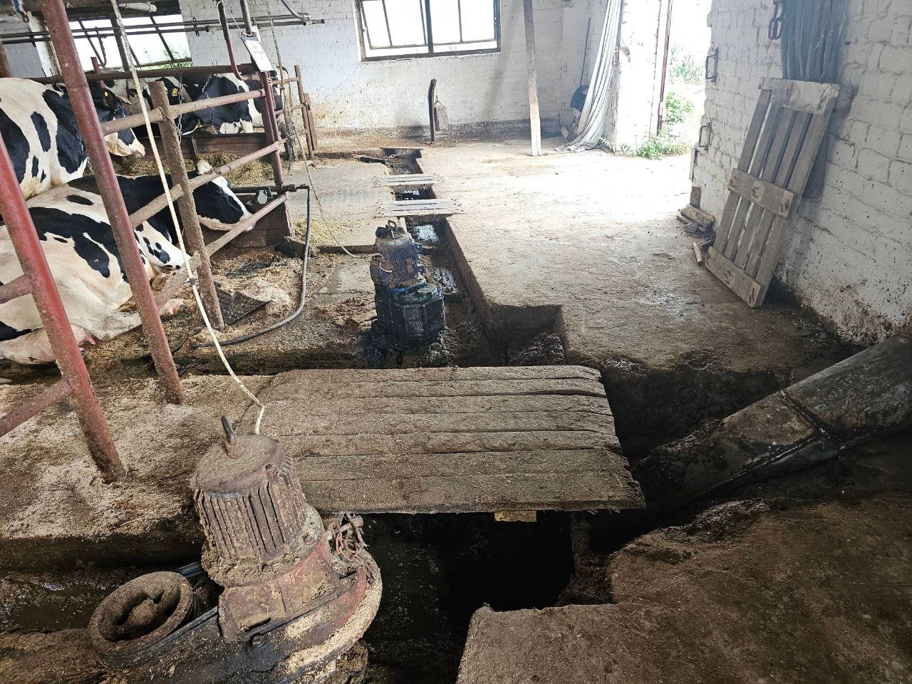 На сельскохозяйственным предприятии в помещении животноводческого комплекса установлен наклонный шнековый транспортер, который автоматически с помощью шнека выводит навоз за пределы здания для его дальнейшей транспортировки в машины.