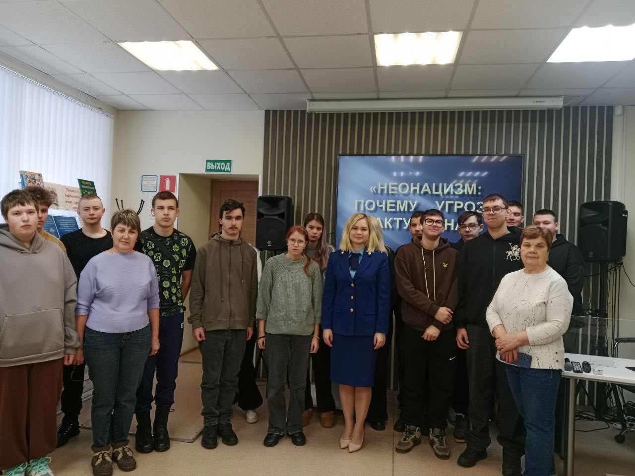 В Красной Горбатке помощник прокурора района Ольга Хохлова рассказала студентам колледжа об угрозах неонацизма