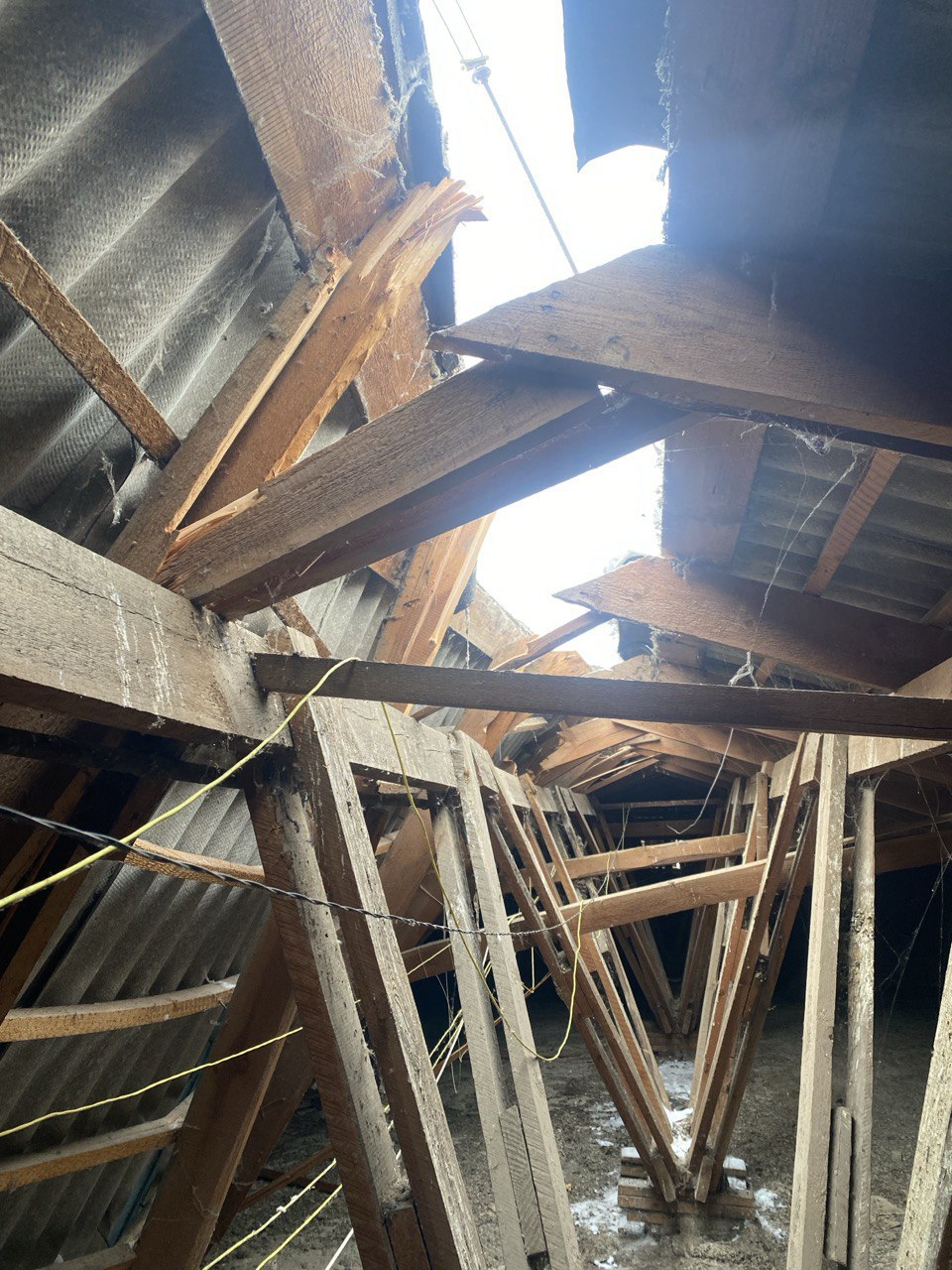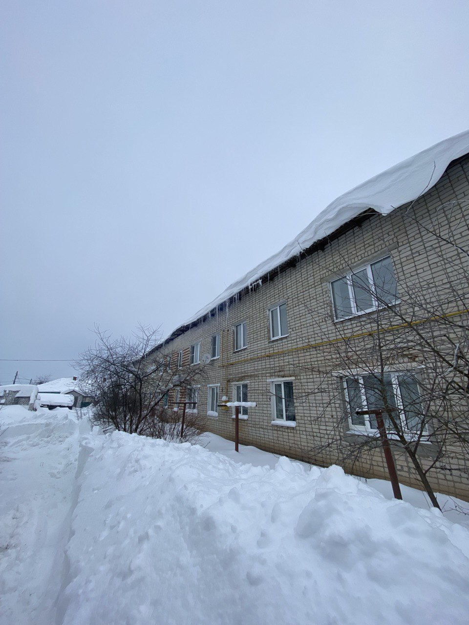 Установлено, что из-за большого количества снега произошло частичное разрушение кровли над вторым подъездом дома.