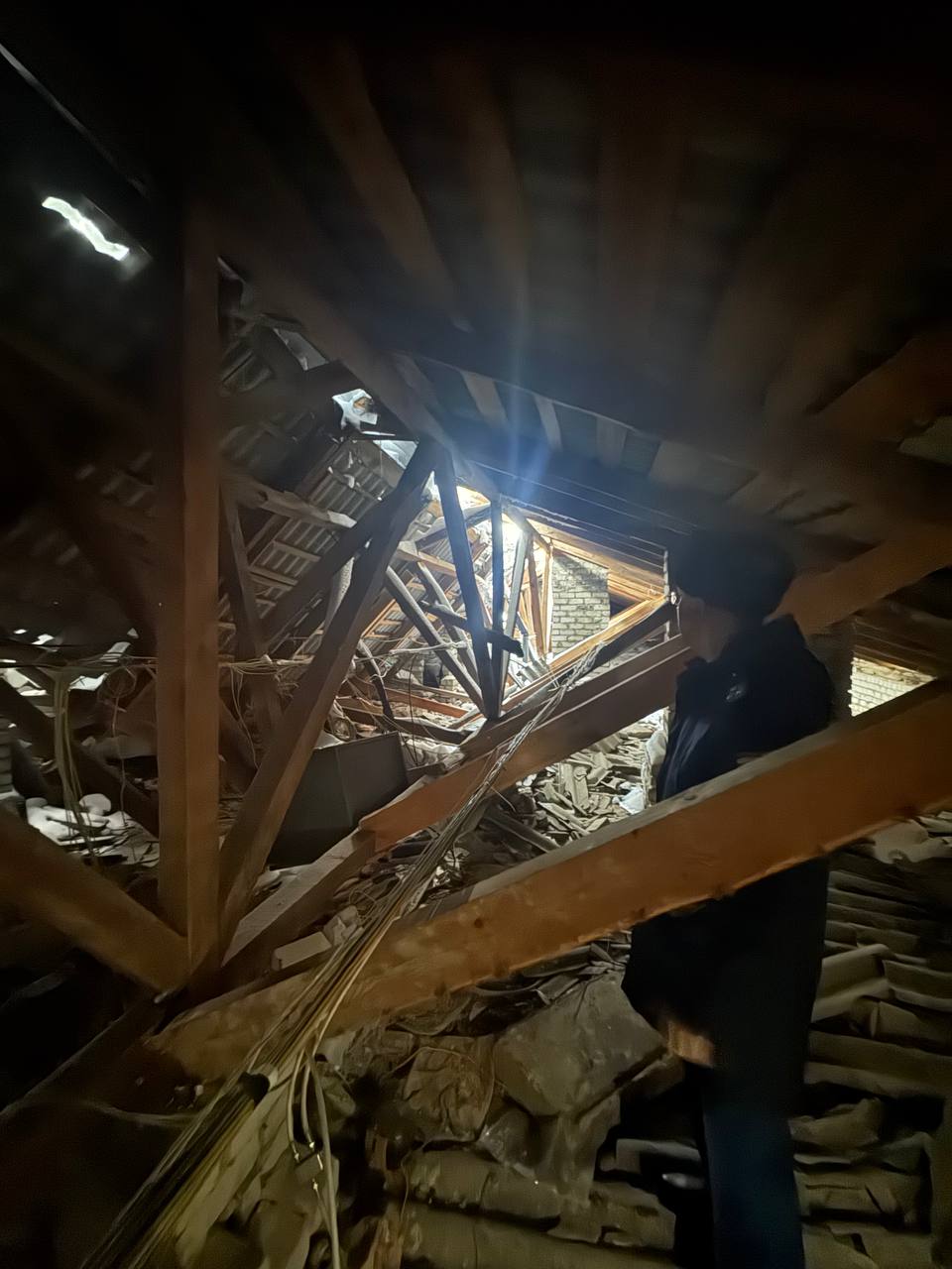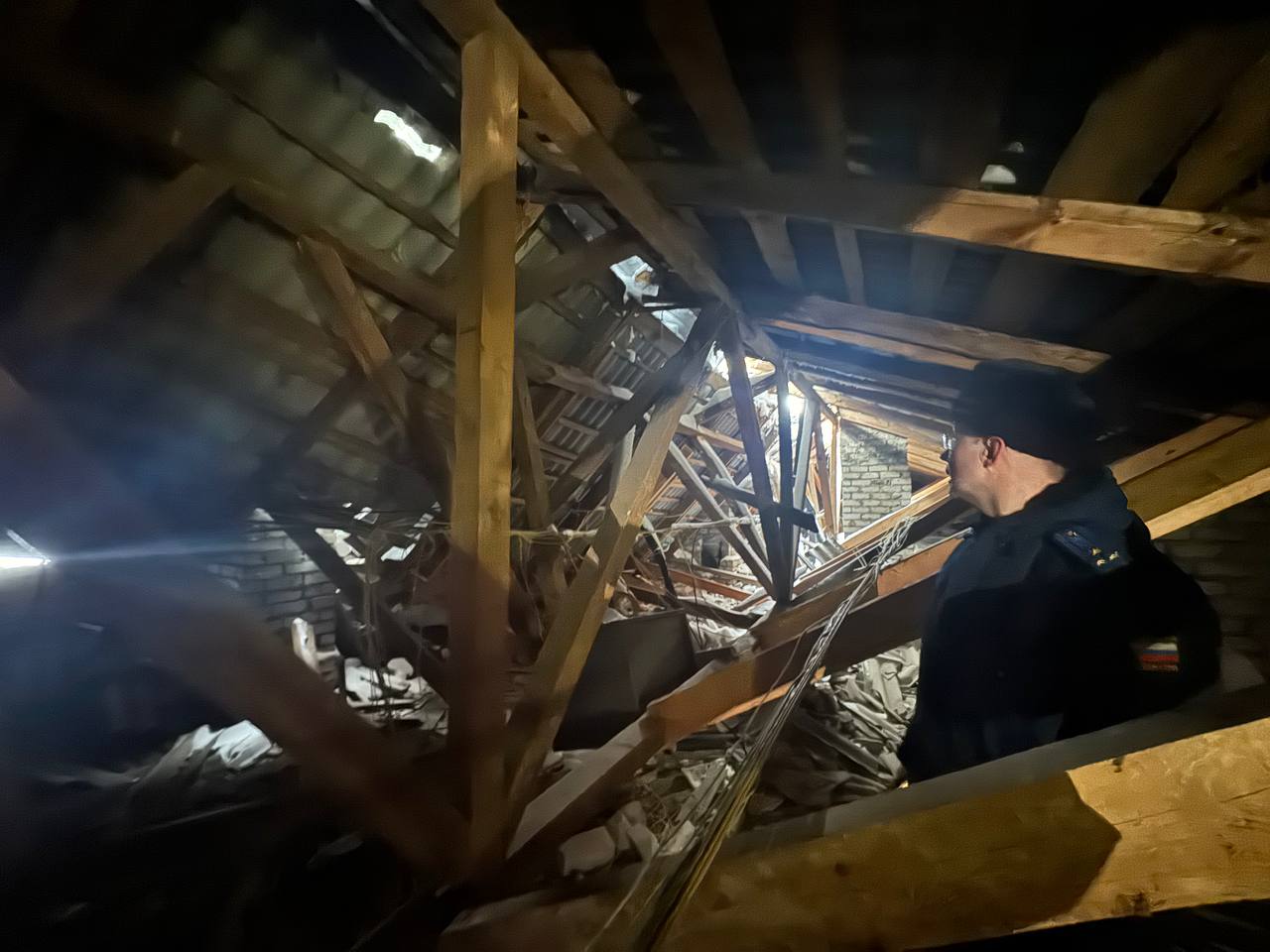 Установлено, что на жилом доме произошло частичное обрушение кровли над пятым и шестым подъездами.