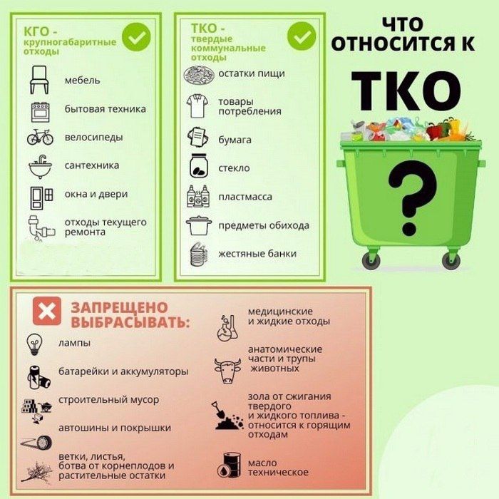 Накопление твердых коммунальных отходов (ТКО) осуществляется только на контейнерных площадках.Какие отходы МОЖНО складировать в контейнеры?Отходы, образованные внутри жилых и нежилых помещений на территории частных домовладений.Крупногабаритные отходы...