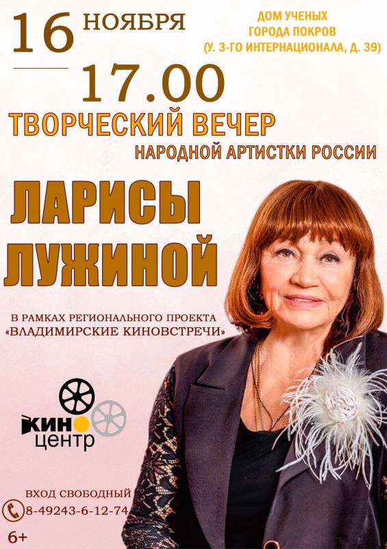 В предстоящие выходные к нам в гости приедет советская и российская актриса, народная артистка РСФСР Лариса Лужина.В субботу, 15 ноября, актриса пообщается со зрителями в ДК п.М.Горького Камешковского района (в 17 часов), а в воскресенье...