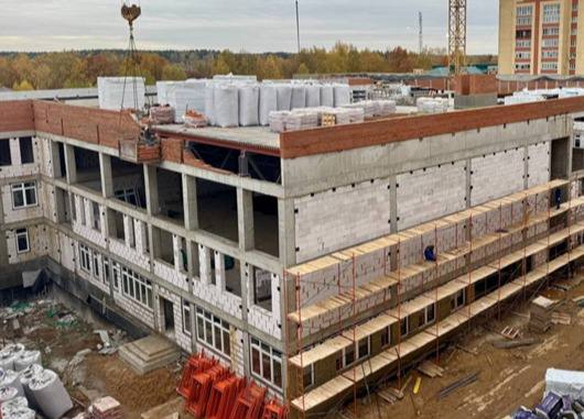 В корпусах строящейся школы в Александрове монтируют окна и фасадные плиты