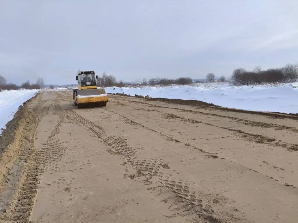 Главный региональный дорожный подрядчик, компания ДСУ-3 продолжает строительство дороги от Мосино до Загорья. Возводят песчаное основание будущей дороги. Его высота составит до 1,2 метра. Идет монтаж водопропускные трубы.