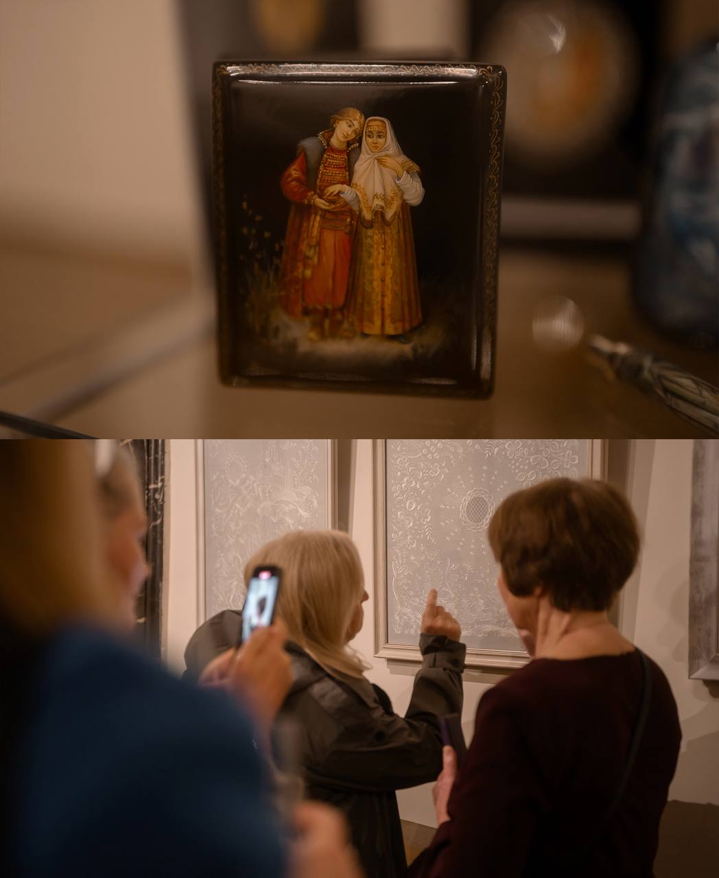 Все экспонаты – из частных коллекций культуролога, автора документальных фильмов о Мстёре Марины Каримовой и талантливой вышивальщицы, члена Союза художников России Нины Пчеляковой.