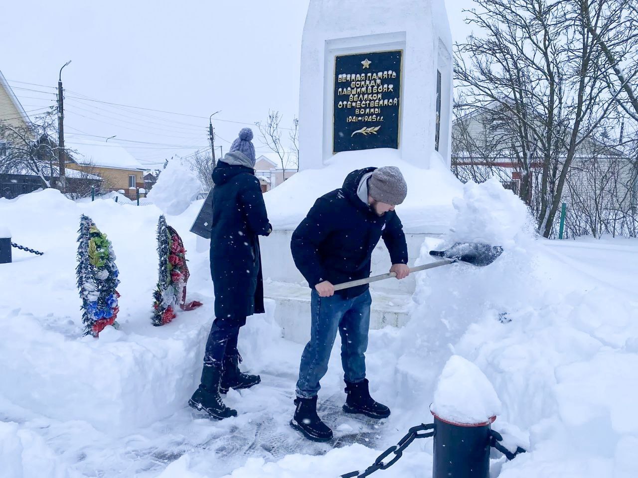 Студенты колледжей и старшеклассники очищают от снега мемориалы и памятники во Владимирской области
