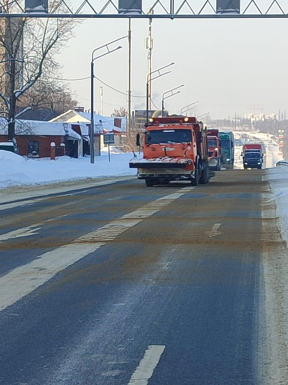 Согласно решению КЧС сотрудники муниципального ЦУГД приступили к антигололедной обработке этого участка федеральной трассы для того, чтобы не допустить транзитного транспорта через дорожные артерии внутри города.