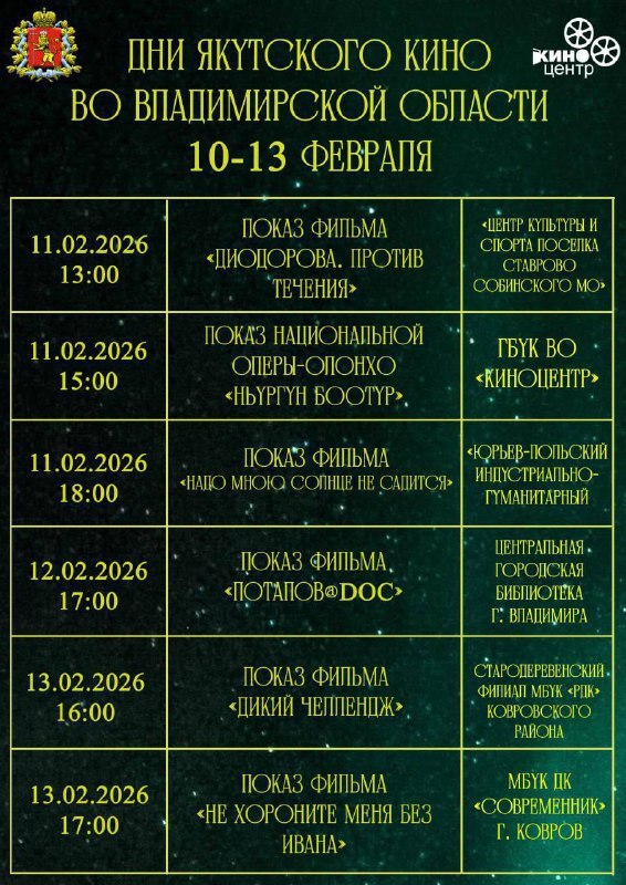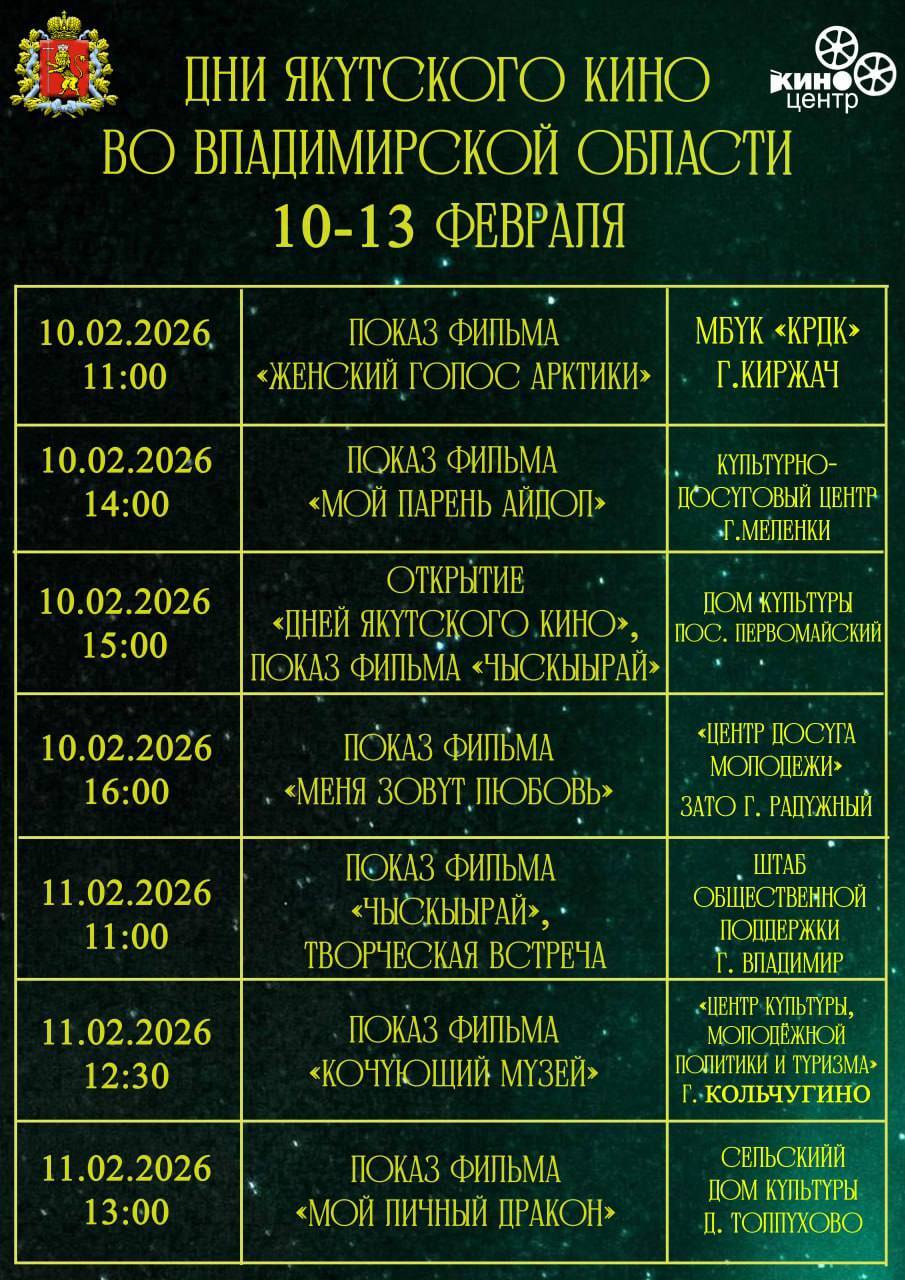 Во Владимирской области сегодня стартуют «Дни якутского кино». Они проводятся областным Киноцентром при поддержке Минкультуры ВО в рамках Года единства народов России.