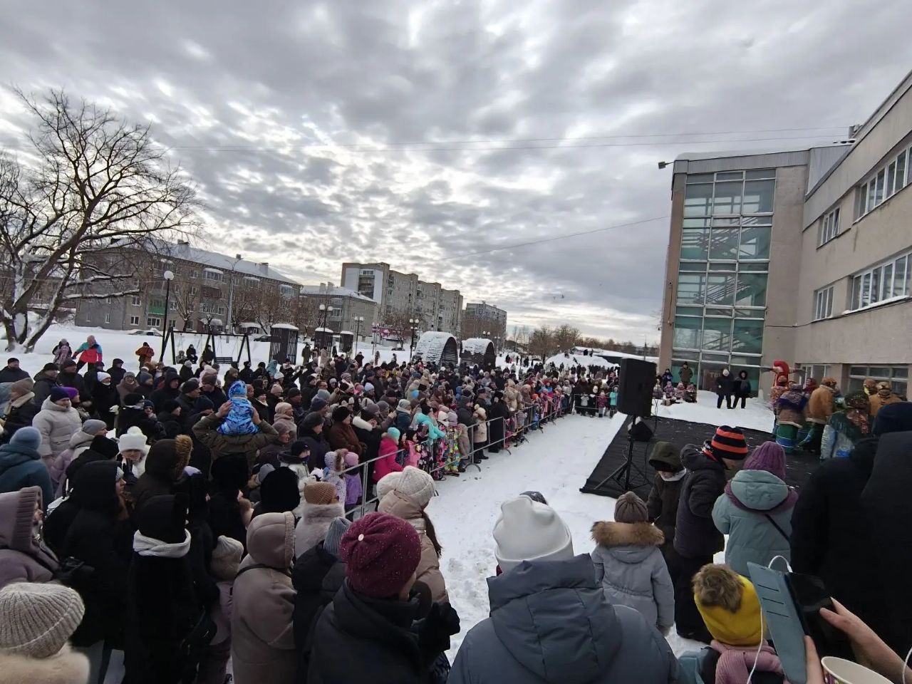 Здесь гости могли насладиться народными гуляньями, концертом творческих коллективов, поучаствовать в конкурсах и соревнованиях, полюбоваться снежными шедеврами конкурса "Снежный бум".