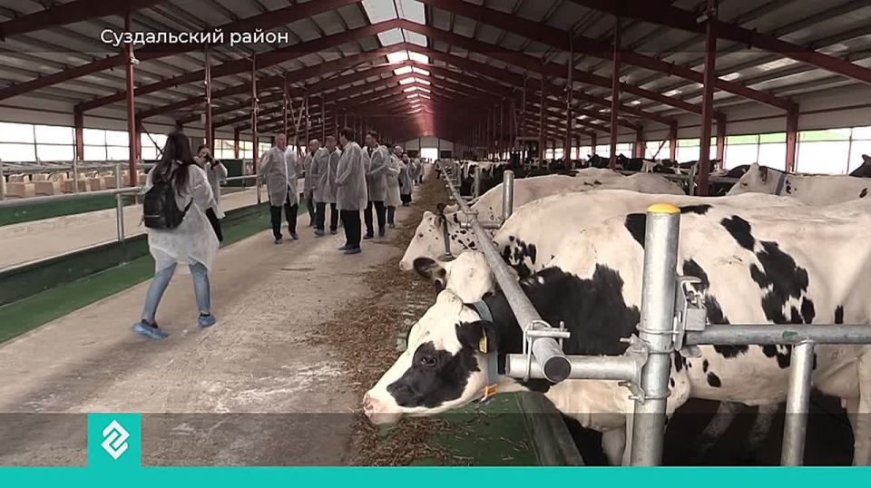 Эти суздальские коровы переехали из другого комплекса племзавода. Все они – голшстинской породы. От других эта разновидность отличается большим надоем молока.Двор рассчитан на 480 скотомест. Доильный зал комплекса автоматизирован. Оператор видит...