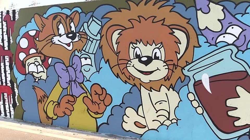 Стену рядом с тротуаром расписали в рамках фестиваля уличного искусства 33zagfest. А в роли авторов выступили юные художники - воспитанники Школы креативных индустрий. В работе участвовали 13 детей, на создание рисунка у них ушло всего несколько...
