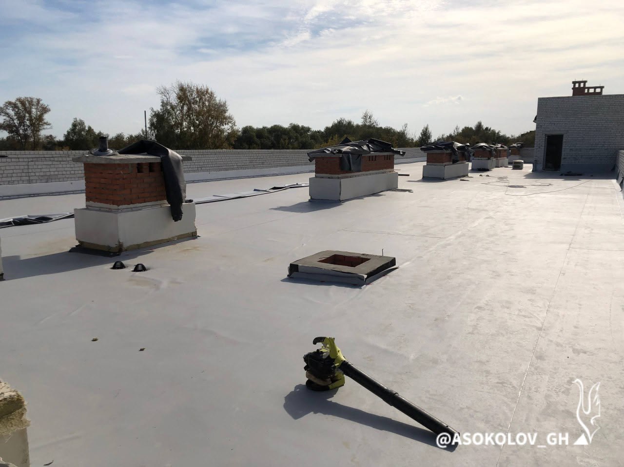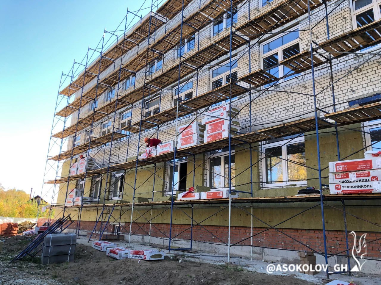 Продолжаются строительные работы в здании нового корпуса школы №15 в Гусь-Хрустальном. Новая подрядная организация завершила основные работы на крыше, что позволяет вести отделку внутри здания. Также идет замена утеплителя на фасаде.