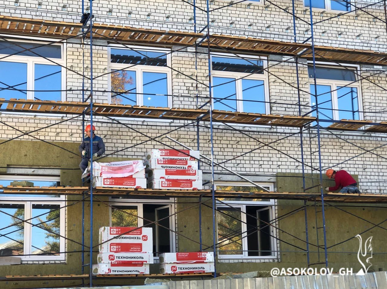 В школе № 15 в Гусь-Хрустальном монтируют утеплитель на фасаде