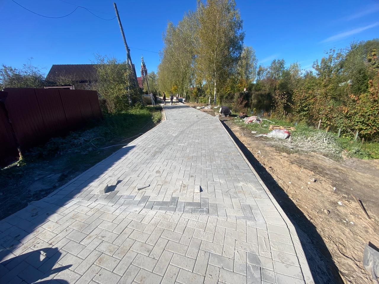 Начались работы по созданию пешеходного маршрута от Свято-Покровского храма по улице Набережная до моста у завода «Промсвязь». Подрядчик сделал грунтовое полотно будущей дорожки, теперь закрепляет бордюры и укладывает плитку.