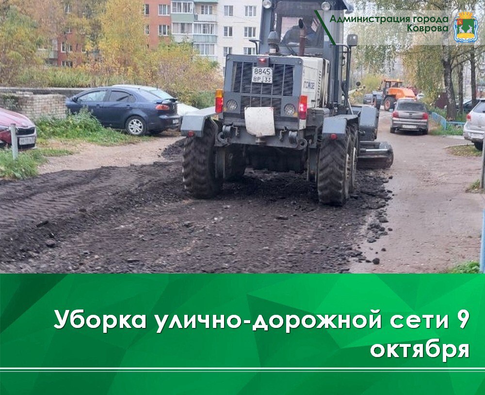 Пять тракторов и КДМ задействованы на механизированной уборке дорог и тротуаров на ул. Кирова, ул. Волго-Донской, ул. Молодогвардейской, ул. 19 Партсъезда, ул. Фрунзе, ул. Туманова, ул. Шмидта, ул. Абельмана, ул. Дегтярева, ул. Октябрьской, ул. Свердлова, ул. Фёдорова, ул. Гагарина, ул. Комиссарова, ул. Набережной, ул. Ковровской, ул. Белинского, ул. Ново-Белинского, а также на пл. Свободы, в сквере им. Ковальчука, на Городском бульваре, в парке им. Малеева и Кангина, в д. Погост и на территории Ковров-8.