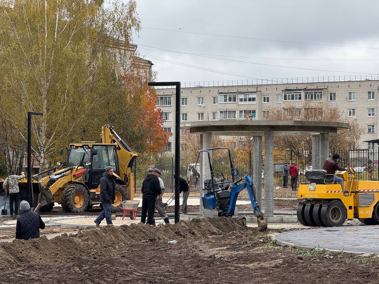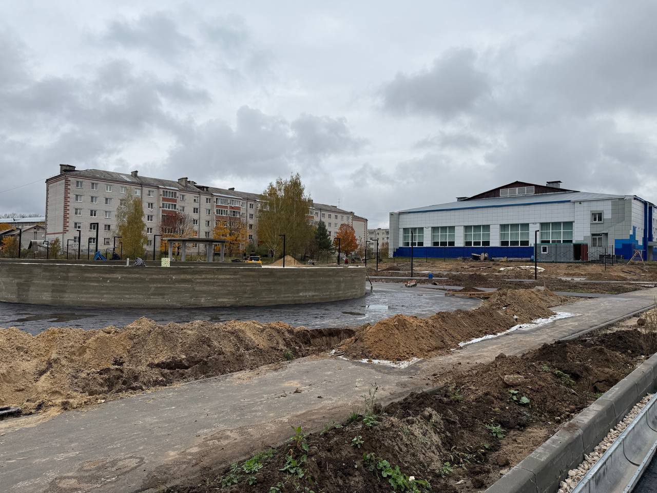 Идет монтаж навесов, прокладка освещения. Поставят лавочки и фонари.