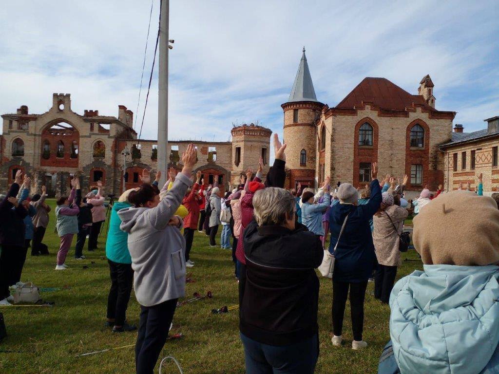 Акция приурочена к международному Дню пожилого человека и Всемирному дню сердца. Серебряные волонтеры Судогодского, Меленковского, Собинского, Кольчугинского, Юрьев-Польского и Суздальского комплексных центров приняли участие во флешмобе, после которого отправились в пешее путешествие в 10 000 шагов по усадьбе Храповицкого с опытными экскурсоводами.