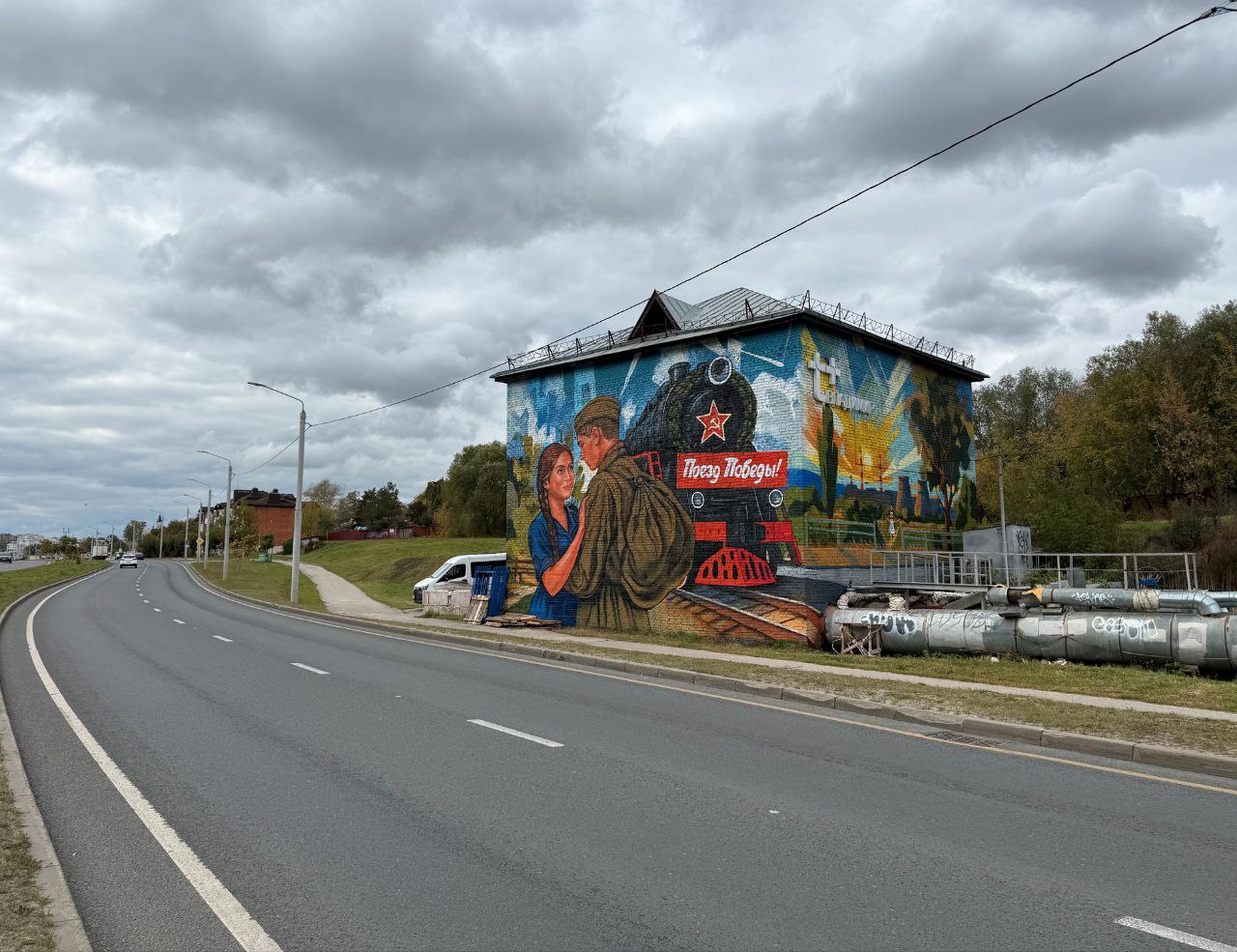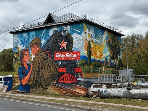 Во Владимире мурал на здании по Лыбедской магистрали стал кульминацией конкурса «Герои фронта и тыла тогда и сейчас». Здесь художники реализовали композицию, вдохновением для которой послужила работа победителя Евы Кузнецовой «Долгожданная встреча». На ней энергетик, труженик тыла возвращается домой после смены, его встречает дочка. Тем временем на перрон прибывает Поезд Победы, где солдата также встречают родные.