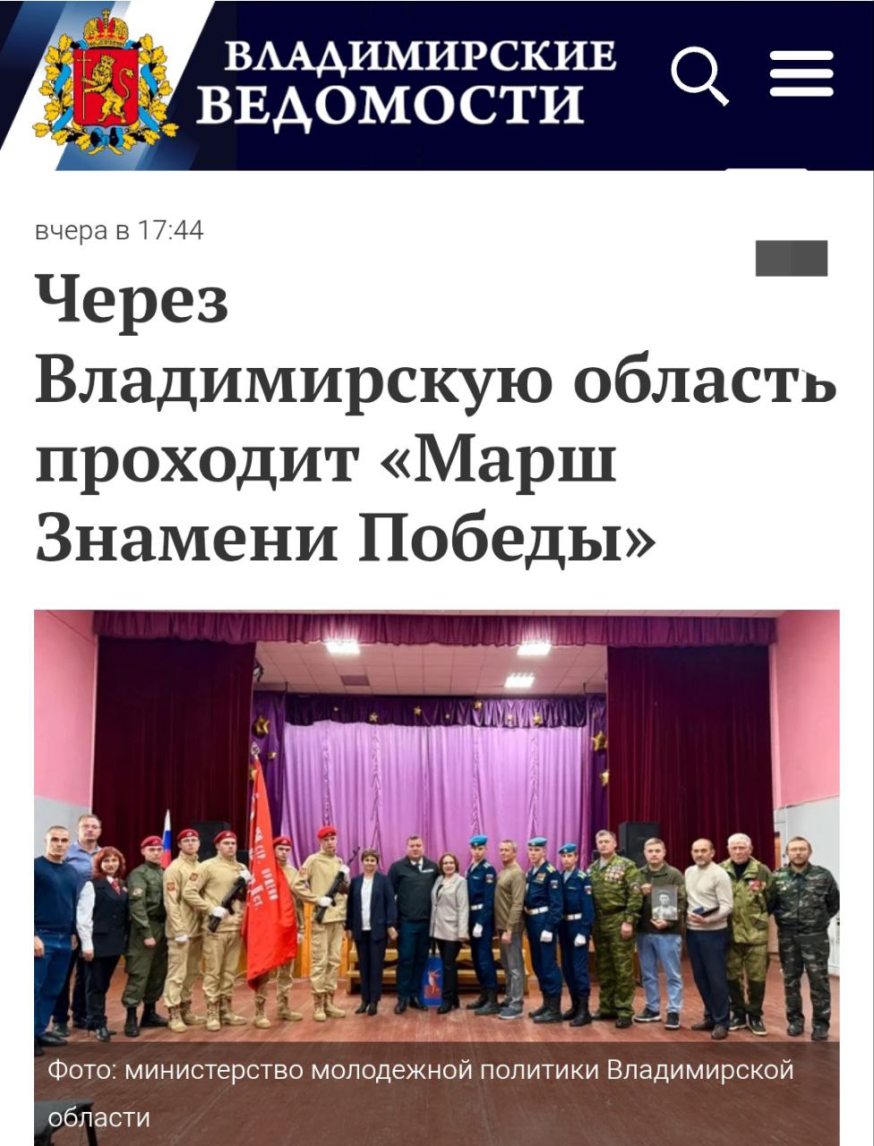 Владимирская область торжественно приняла копию Знамени Победы в Великой Отечественной войне 1941-1945 годов от Рязанской области в рамках Всероссийской акции «Марш Знамени Победы».