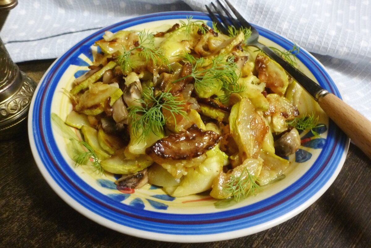 Добавление мелко нарезанного лука следует производить после того, как кабачки поджарятся до золотистого цвета. Перемешивать можно нечасто, чтобы солнечные кусочки оставались целыми и не расползались. Примерно через 10 минут жарки добавляют соль и специи по вкусу, что влияет на насыщенность вкуса.