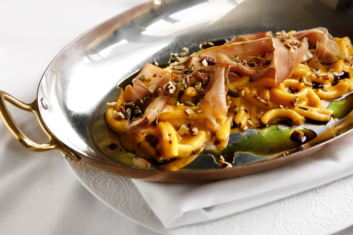 На первом плане сезона — крем-суп из тыквы с уткой и мини-синнабоны с фуа-гра. Однако настоящую звезду меню представляет домашняя паста казаречче, которую подают с кремом из тыквы, рокфорским сыром, пармской ветчиной и орехами пекан. Это блюдо обещает стать настоящей изюминкой осеннего застолья.