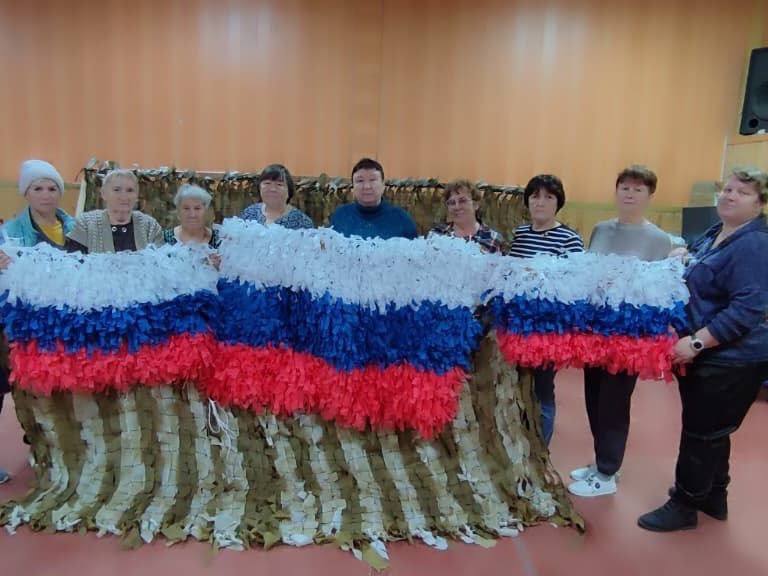 В поселке Иванищи Гусь- Хрустального района сплели несколько флагов из спанбонда для наших бойцов
