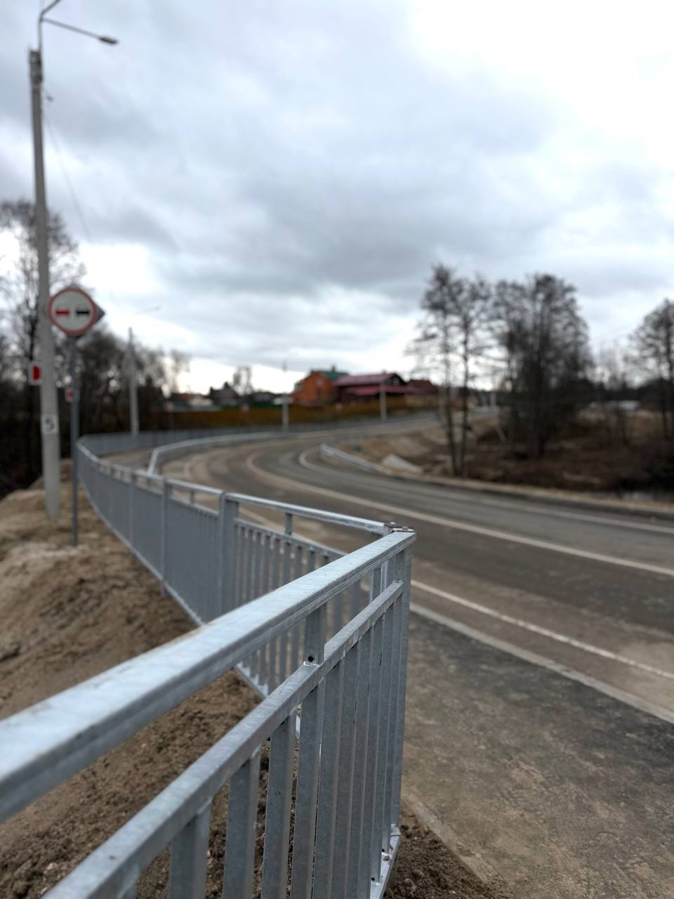 Построено 180 метров тротуара, установлено перильное ограждение, сигнальные столбики, дорожные знаки и нанесена разметка. Появилось и освещение - всего 12 фонарных столбов.