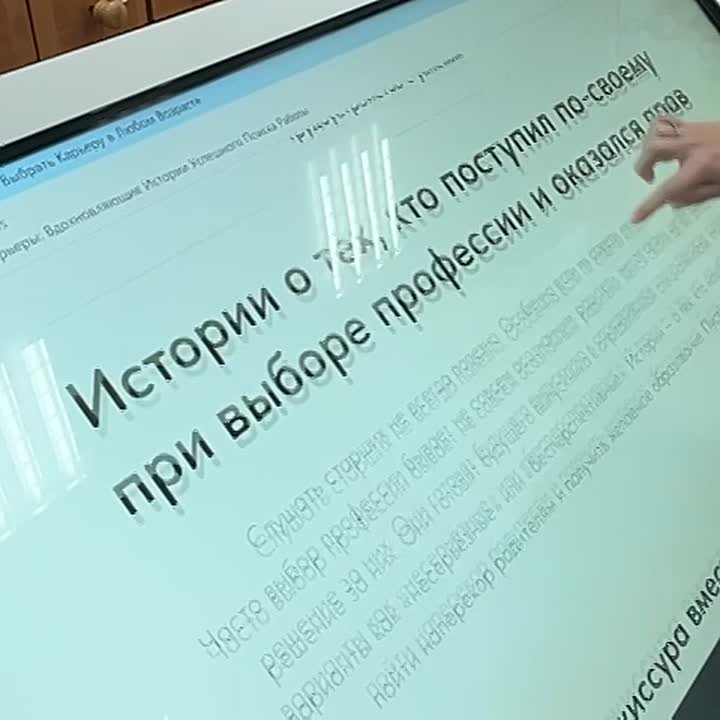 Здесь каждый ученик может подробно изучить различные профессии, представленные в удобной и интерактивной форме. Панель в школе используют не только в рамках проекта, но и также на курсе «Россия — мои горизонты».