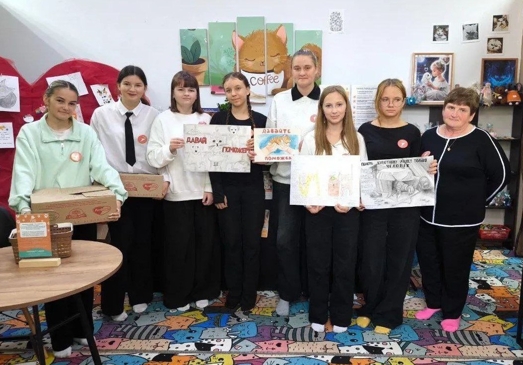 Ребята из Движения Первых с куратором Мариной Юматовой из УИК 567 Гусь-Хрустального помогают пушистым друзьям из приюта «Спасти может каждый».