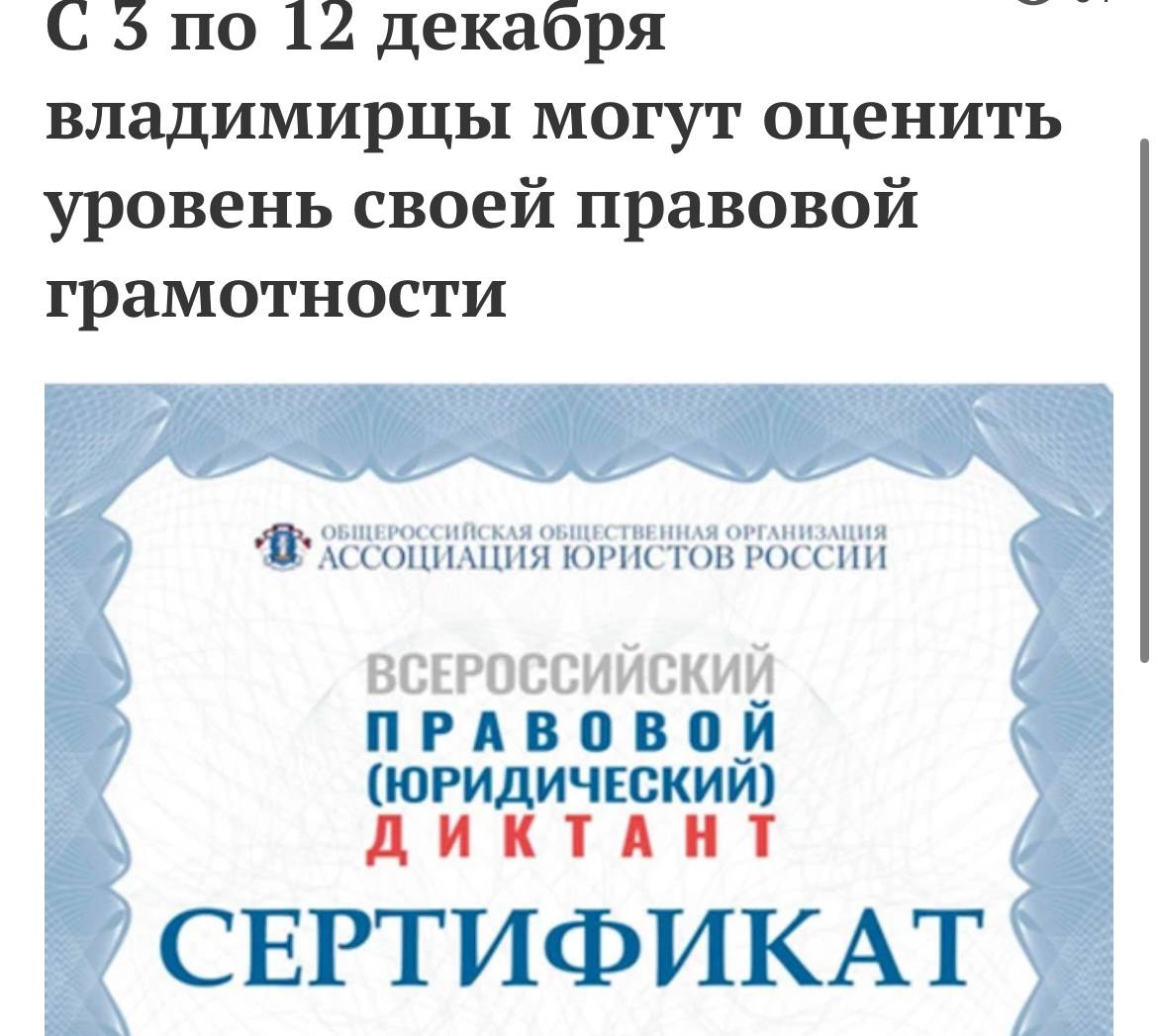 Ассоциация юристов России проводит ежегодный Всероссийский правовой (юридический) диктант на официальном портале юрдиктант.рф. Это масштабный просветительский проект в форме добровольного тестирования, направленный на проверку и повышение уровня правовой грамотности граждан.