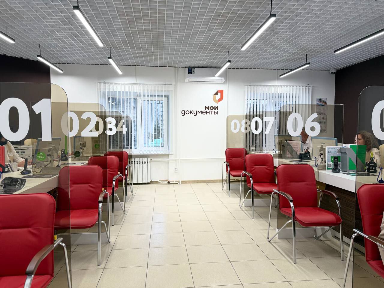 Центр «Мои документы» полностью преобразился, продумана каждая деталь, чтобы получение государственных и муниципальных услуг было максимально комфортным и удобным: современная зона ожидания с системой кондиционирования.