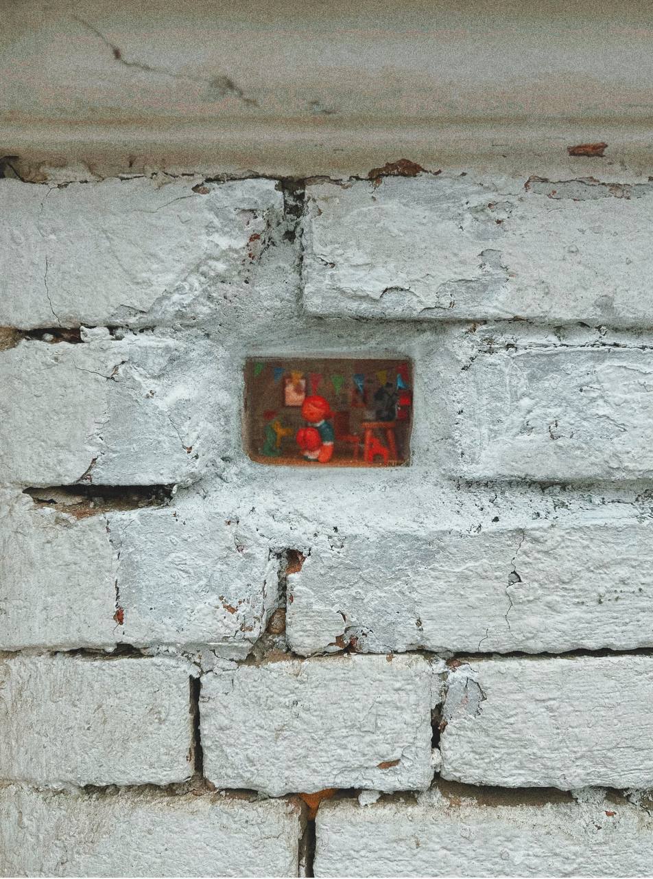 Стрит-арт по-владимирски: в областном центре в конце 2025 года появились новые миниатюры. Они по традиции словно «вмонтированы» в кирпичную стену. Тематика повседневна: взгляд в комнату подростка.