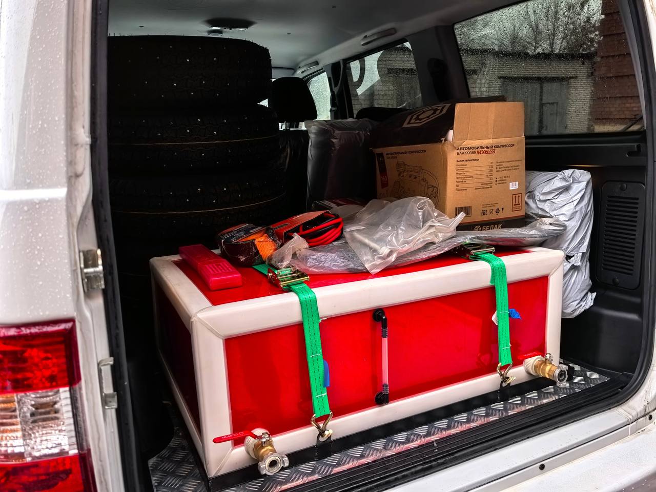 В УАЗе размещен 200-литровый резервуар для воды, что позволяет обеспечить первоочередное тушение до прибытия пожарных. Машина также оснащена жесткими и мягкими ранцевыми огнетушителями, системами дымозащиты, костюмами огневой защиты, бензопилой, генератором, различными инструментами.