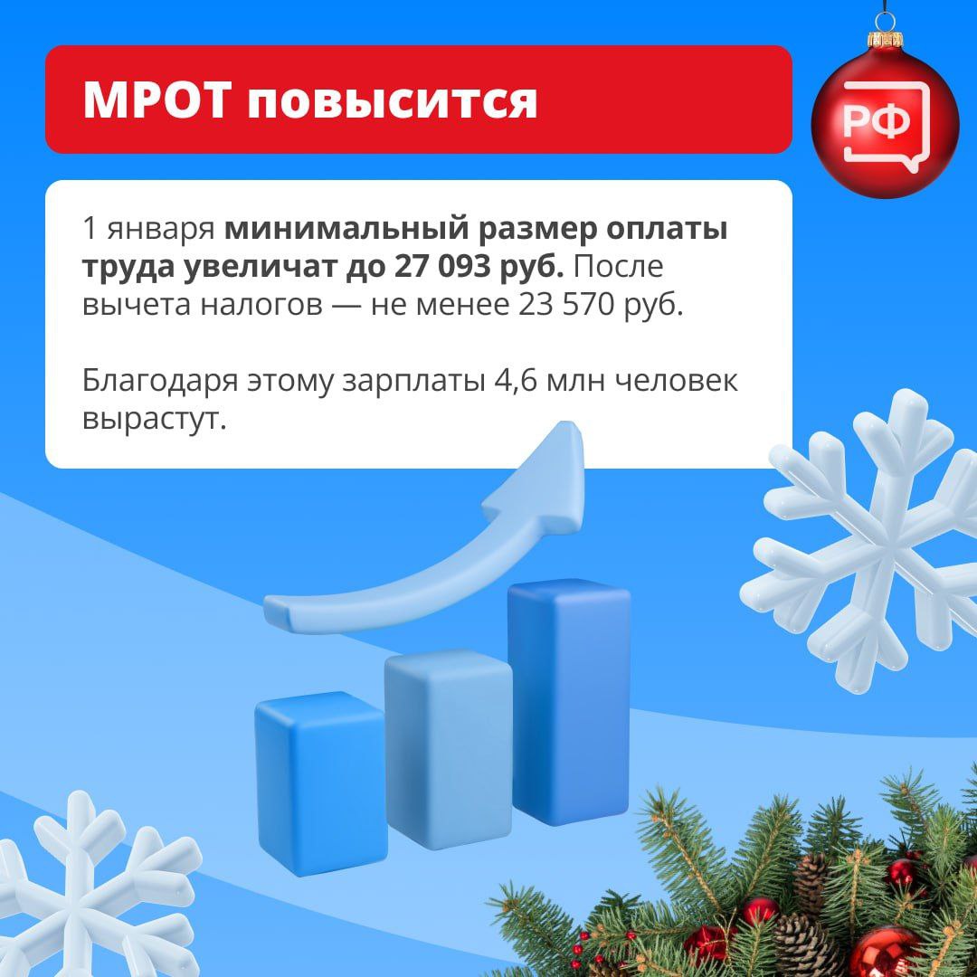 Семьи с детьми будут получать налоговую выплату, МРОТ и страховые пенсии повысят, а участники СВО смогут проходить реабилитацию с сопровождающими.