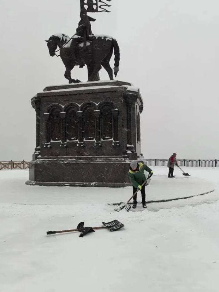 В праздничный Рождественский день наш город окутал густой снегопад, и сотрудники МКУ «Зеленый город» приступили к очистке городских парков и скверов с удвоенной энергией.