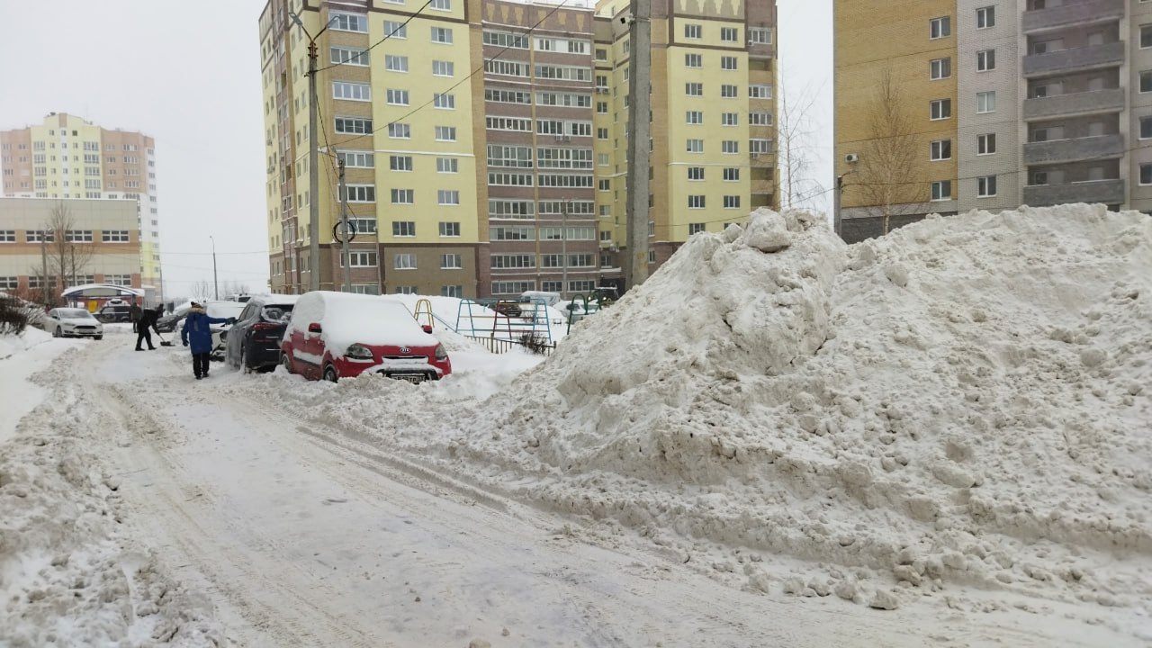 Во дворах идет масштабная уборка снега. Жители достали лопаты из машин и сараев, кто-то даже привез свой снегоуборщик с дачи.