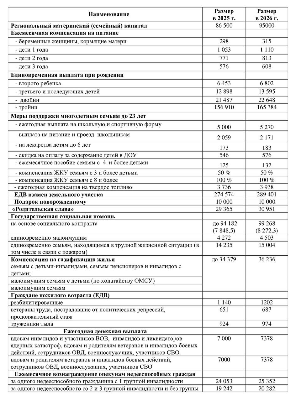 Согласно проекту закона Владимирской области «О внесении изменений в отдельные законодательные акты Владимирской области» с 01.01.2026 года индексация областных пособий и социальных выплат, установленных областным законодательством, составляет 5,4%.