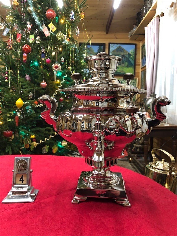 - Пасхальный самовар в форме яйца: Этот удивительный экземпляр, выполненный из латуни и никеля и выпущенный фабрикой купца Гудкова в начале ХХ века, отлично подойдет для празднования Пасхи. Его объем составляет 5 литров, что делает его не только красивым, но и практичным.
