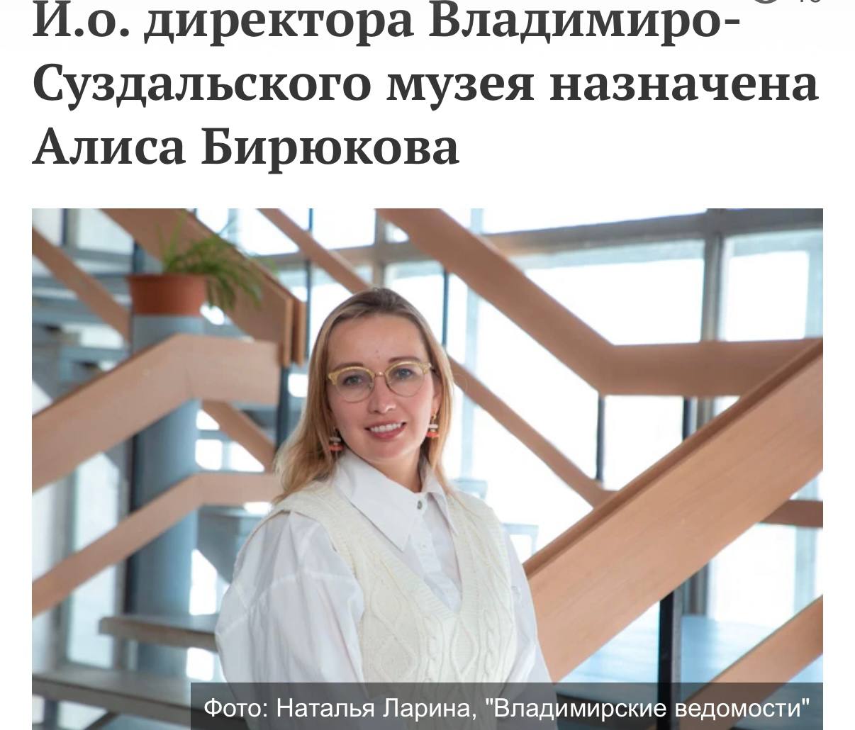 С августа 2022 года до назначения в ноябре 2023 года руководителем суздальской администрации занимала пост директора музея-заповедника "Горки Ленинские" в Московской области. Так что музейный опыт работы у нее есть.