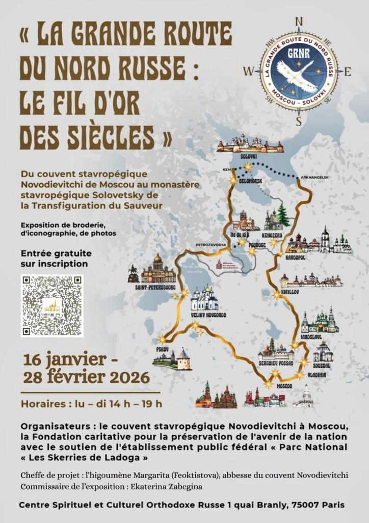 В Российском духовно-культурном центре в Париже открылась выставка «Великий русский северный путь. Золотая нить столетий». Владимирская область представлена работами наших талантливых вышивальщиц: икона «Богоматерь Владимирская» от Нины Пчеляковой (Мстёра) в технике «знаменная гладь» и изящные украшения «Накосник» от Юлии Лябиной (Судога).