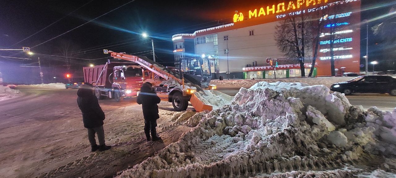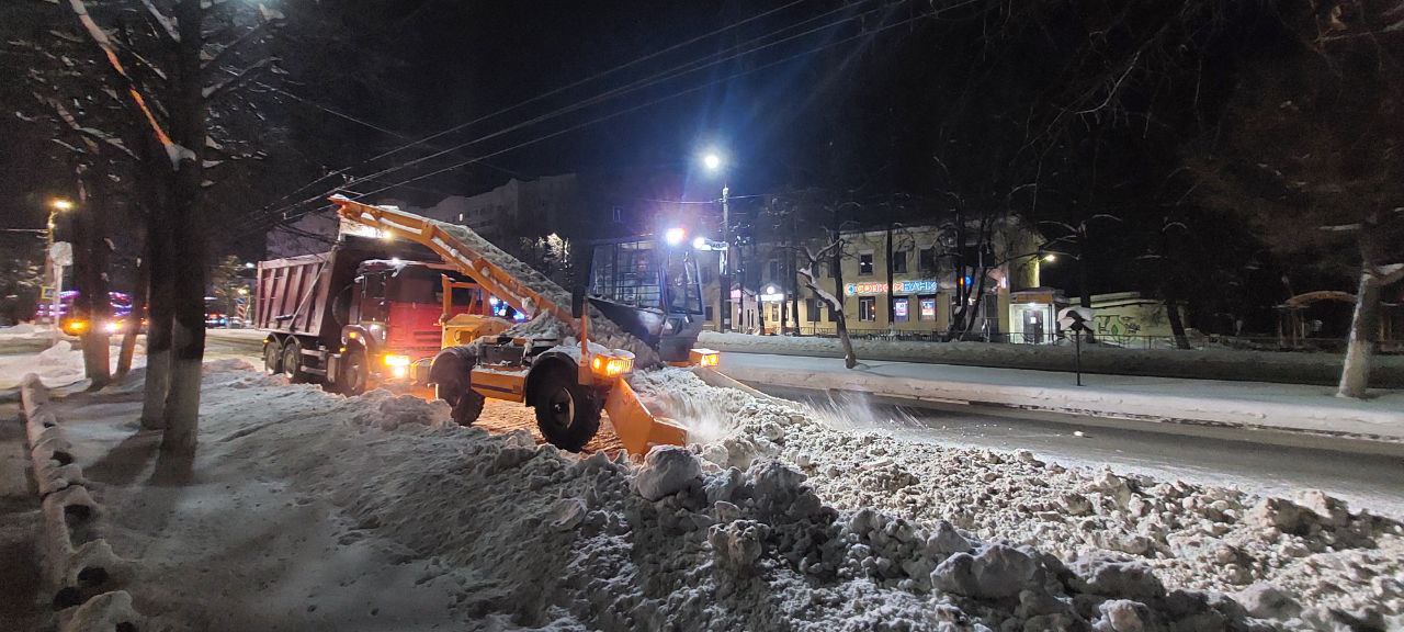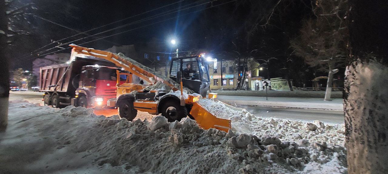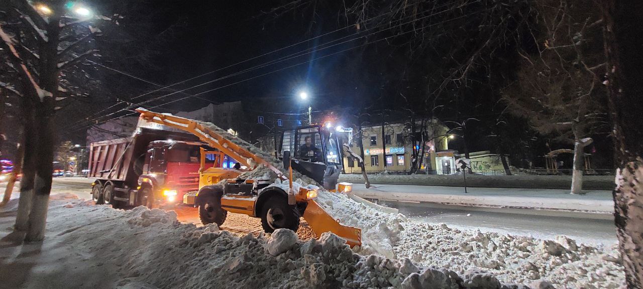 В городе продолжается уборка и вывоз снега с улиц. Работает лаповый погрузчик, самосвалы, трактора. Основная часть работ по вывозу снега с дорог проходит в ночное время. В ночь на субботу проводилась уборка снега лаповым погрузчиком с пр. Ленина.