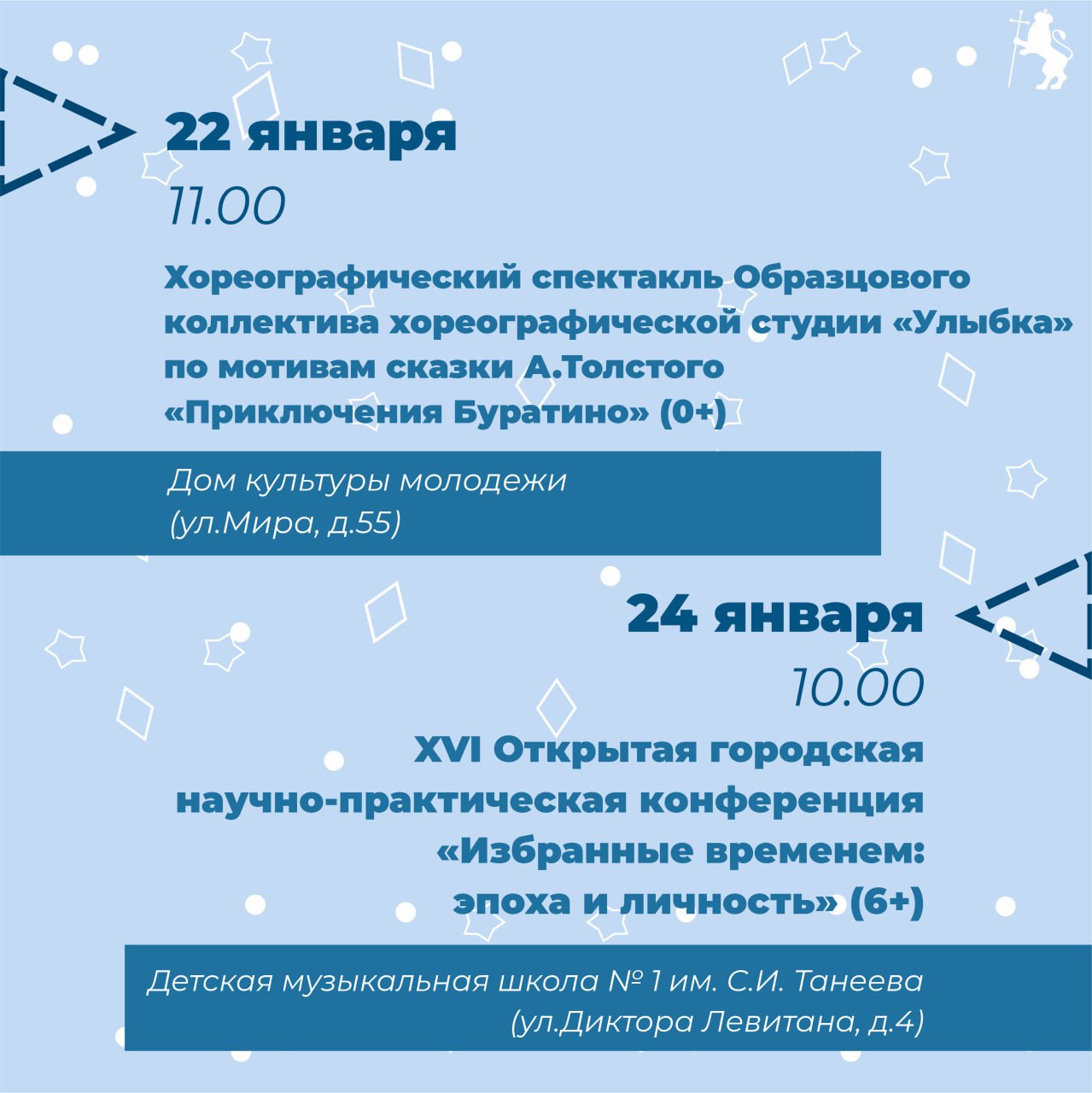 Афиша наиболее крупных мероприятий на предстоящую неделю.