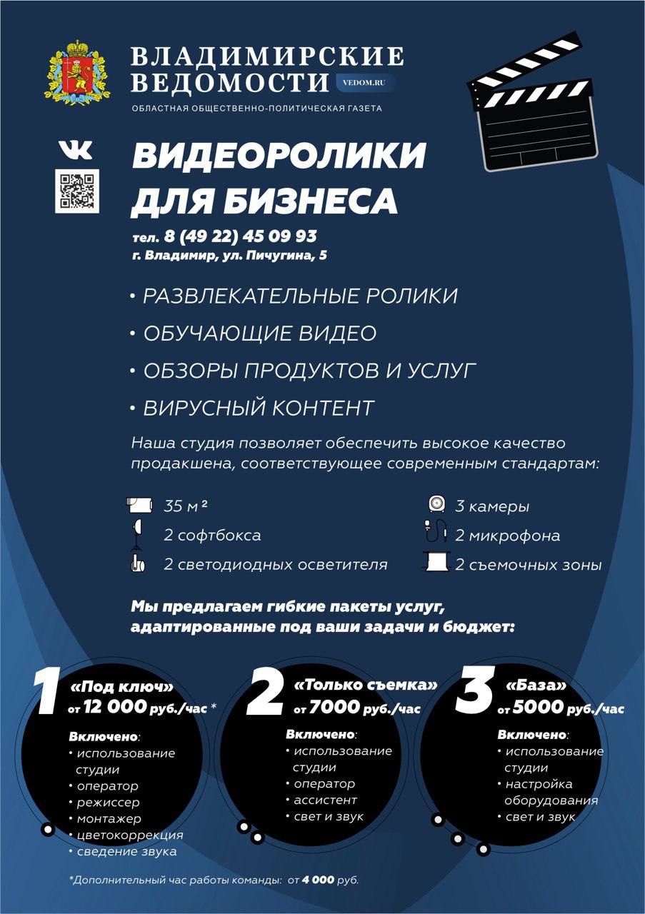 «Владимирские ведомости» предлагают профессиональное видеопроизводство.